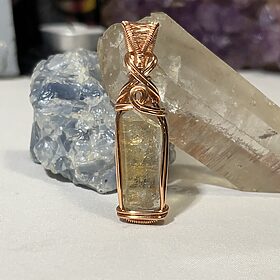 Dandelion Yellow Mushroom with Clear Quartz Point Pendant Necklace