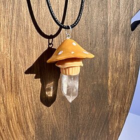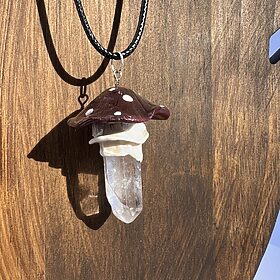 Bronze Colored Polymer Clay Mushroom Charm with Clear Quartz Point